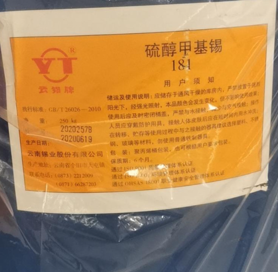 - 云錫牌硫醇甲基錫熱穩(wěn)定劑“YT-181透明性好 色澤純凈 物性表, 云錫牌硫醇甲基錫熱穩(wěn)定劑“YT-181透明性好 色澤純凈 產(chǎn)品參數(shù),云錫牌硫醇甲基錫熱穩(wěn)定劑“YT-181透明性好 色澤純凈 性能表,云錫牌硫醇甲基錫熱穩(wěn)定劑“YT-181透明性好 色澤純凈 出廠報(bào)告, MSDS,, 物質(zhì)安全資料表, UL黃卡,{ SGS報(bào)告, RoHS, 食品級認(rèn)證, NSF飲用水標(biāo)準(zhǔn), 產(chǎn)品資料, 產(chǎn)品性能, 出廠報(bào)告, 原廠原包, 代理商, 熱變形溫度, 熔指數(shù), 流動系數(shù), 抗沖擊性能、沖擊強(qiáng)度, 低溫韌性、低溫抗沖擊性能, 熔體流動系數(shù)、熔體流動速率, 加工工藝、加工參數(shù)、加工溫度, 歐盟RoHS 德國FDA 美國FDA 日本FDA